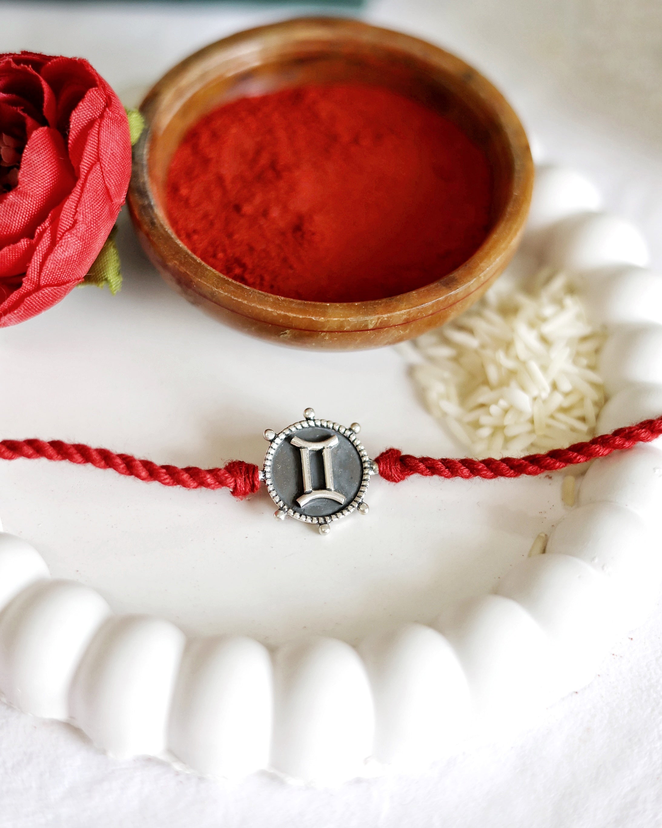 Elevate your Raksha Bandhan celebration. Gift the Gemini Expressive Soul Rakhi and honor a connection as dynamic and enduring as 92.5 sterling silver.