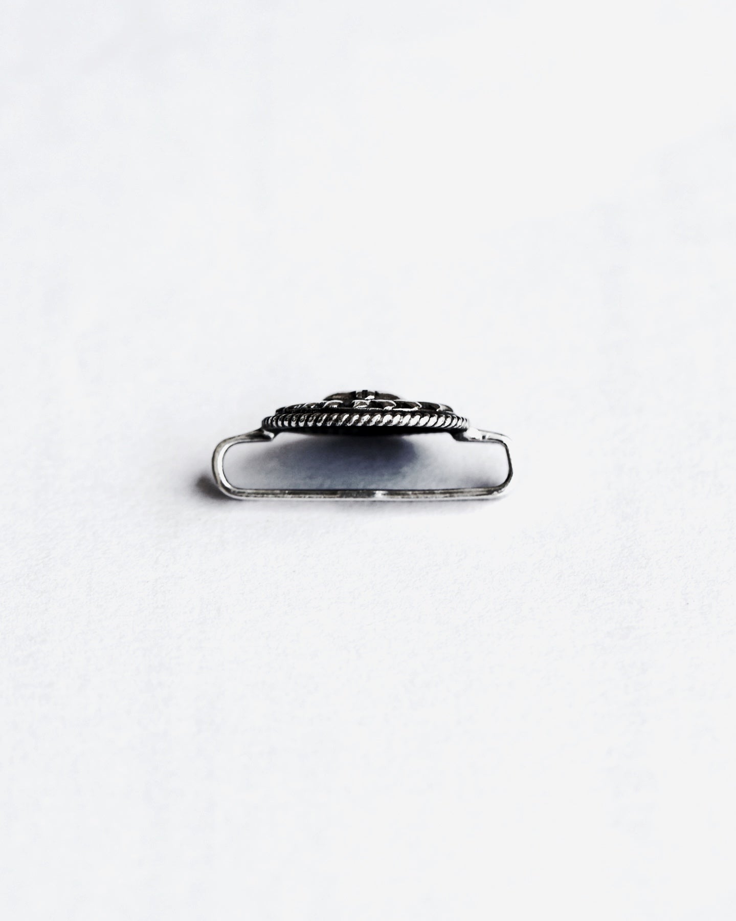 We use hallmarked 925 sterling silver, shaped and finished by hand according to the design — polished, oxidised, or textured.