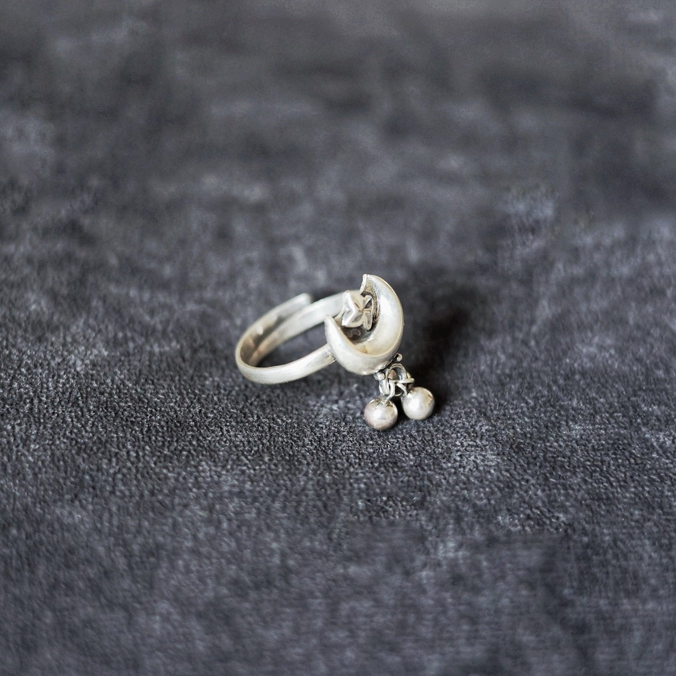 Elevate your style with the regal elegance of the Jodha Silver Big Thumb Toe-ring. This exquisite piece features a crescent moon (Chand) and delicate ghungru, adding a touch of grace and mystique to your ensemble. Crafted in lustrous silver, this thumb toe-ring exudes timeless charm, making it the perfect accessory to adorn your unique style.