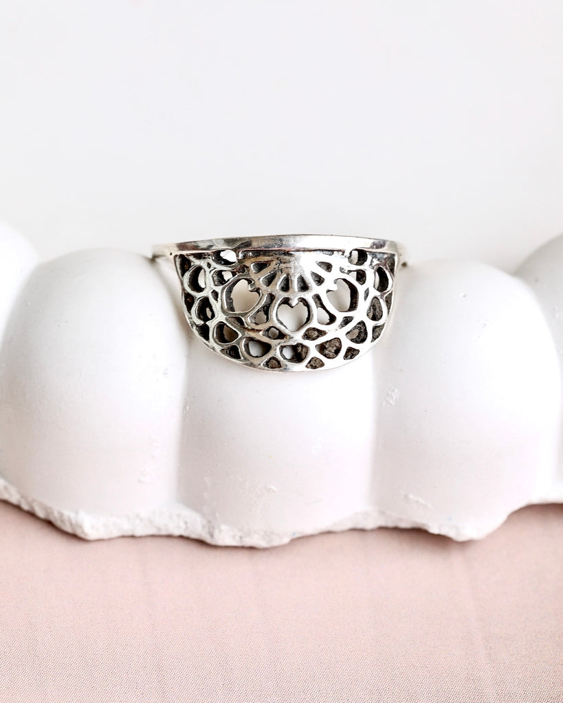 Embrace the beauty of intricate craftsmanship with the Mystic Mandala Ring. Designed in 925 sterling silver, this ring features a delicate filigree mandala pattern, symbolizing harmony and balance. Its lightweight design and timeless appeal make it perfect for everyday wear or as a thoughtful gift for someone special.