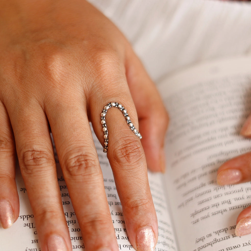 Where minimalist design meets artisan craftsmanship. Handcrafted from 925 sterling silver, its hammered texture and delicate dot detailing create a subtle yet striking aesthetic.