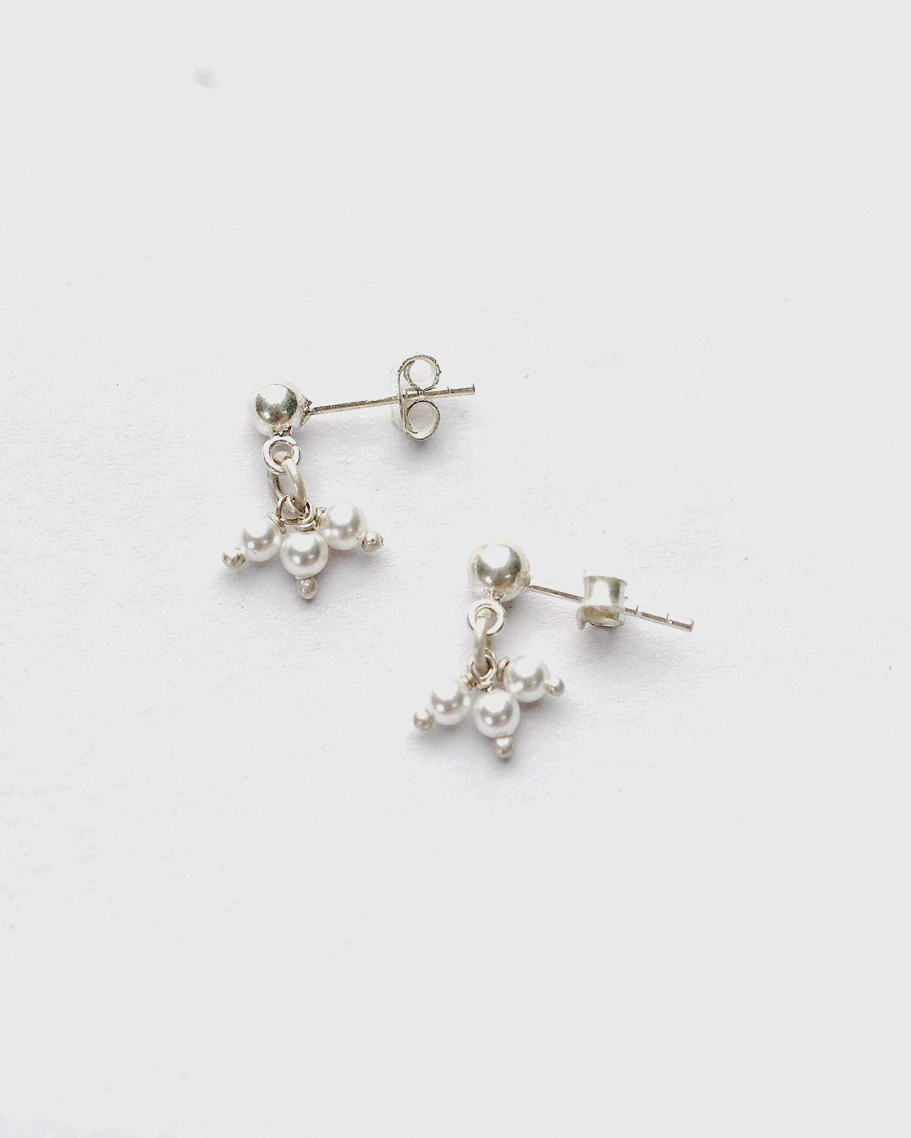 Delicate. Luminous. Charming. These sweet 92.5 silver stud earrings feature a delightful cluster of petite pearls, artfully suspended to create subtle movement and shimmer. Handcrafted for everyday elegance, they add a touch of timeless grace to any look.