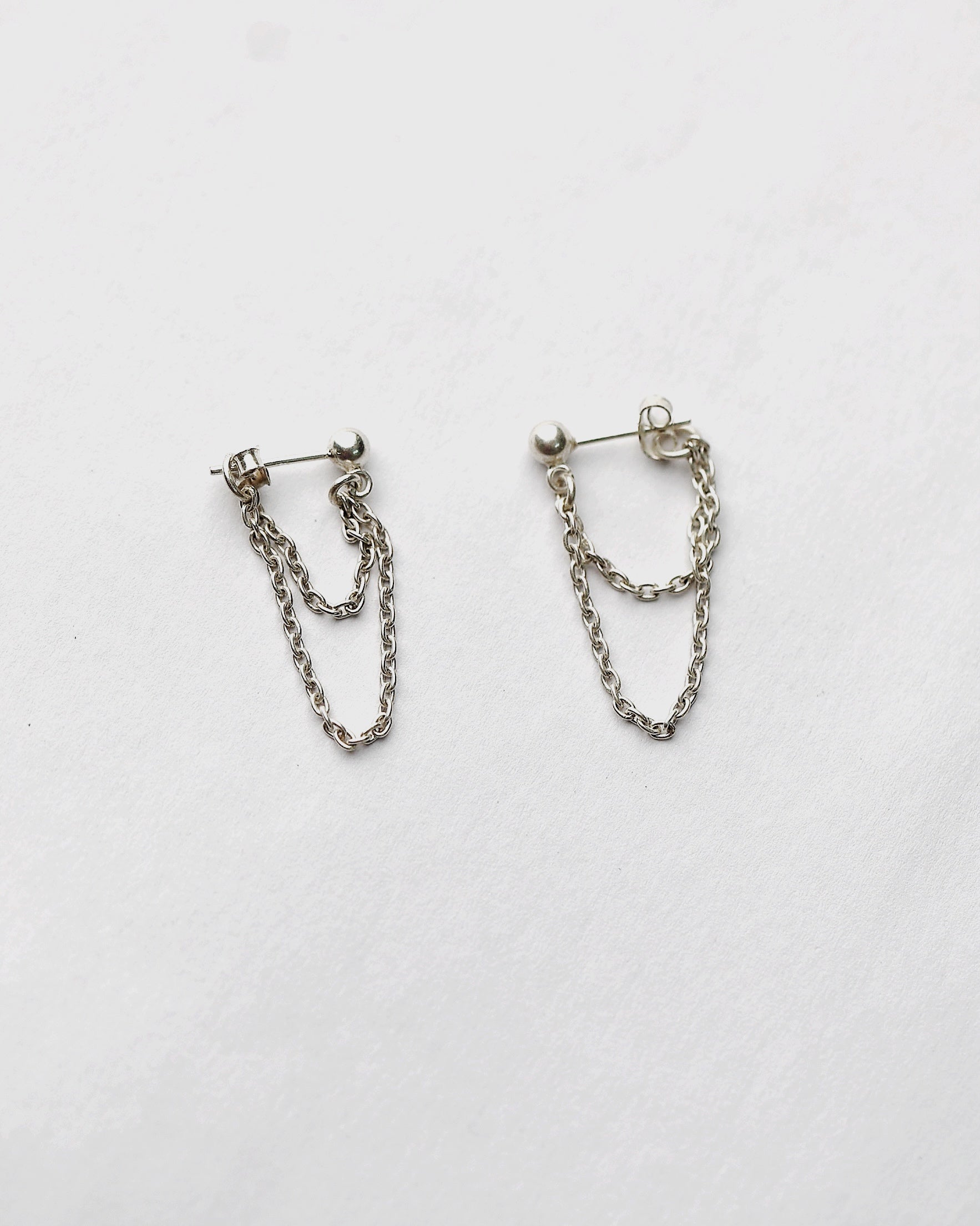 Edgy. Modern. Effortless. This unique 92.5 silver earring combines the simplicity of a stud with the contemporary flair of dual cascading chains, creating an instant style statement. It's the perfect blend of subtle rebellion and everyday sophistication.