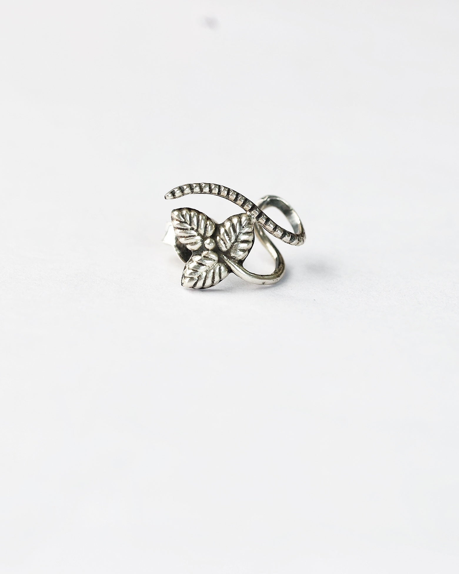 Rooted in nature, styled for now. This handcrafted earrings features a graceful three-leaf motif paired with a beaded arc—hugging your ear in effortless botanical elegance.