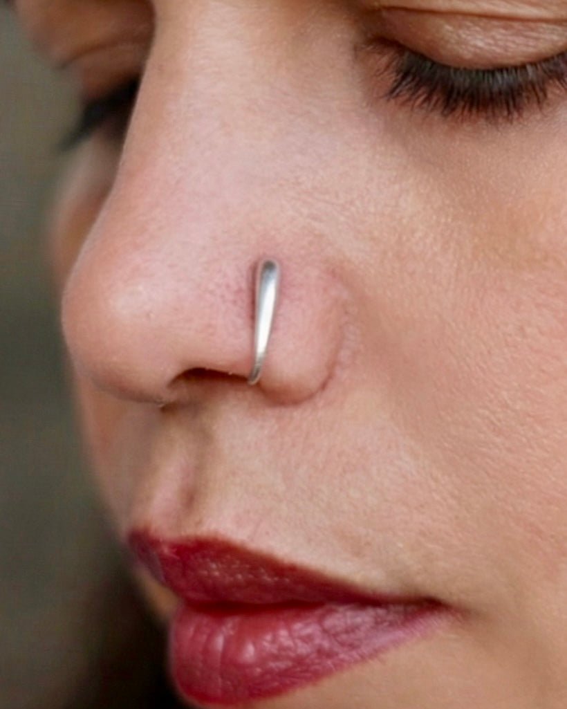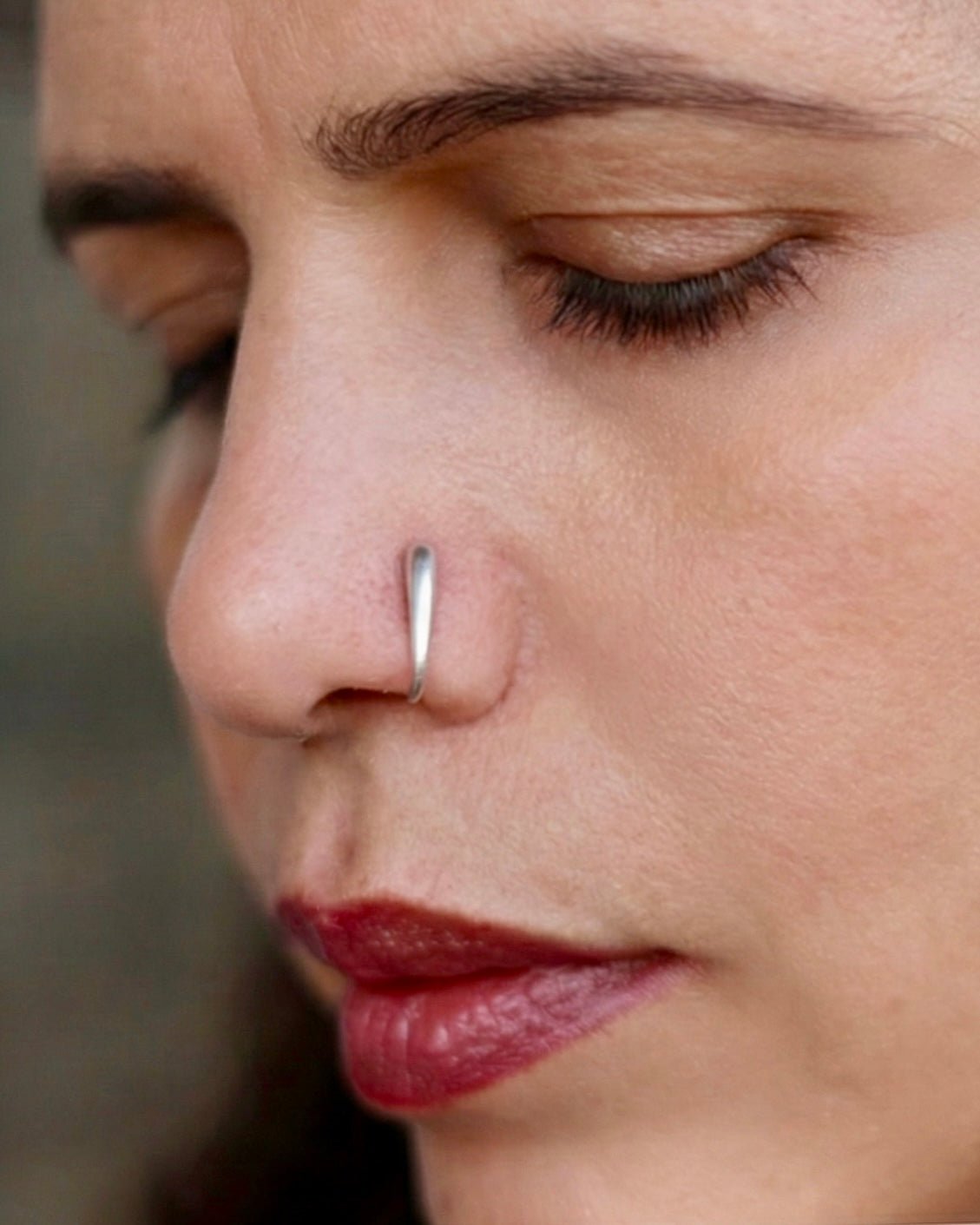 Meet the Svara Drop Curve Silver Nose Pin by Smith Jewels-handcrafted in 925 sterling silver with a smooth, tapered silhouette. Lightweight, minimal, and designed for effortless everyday wear.